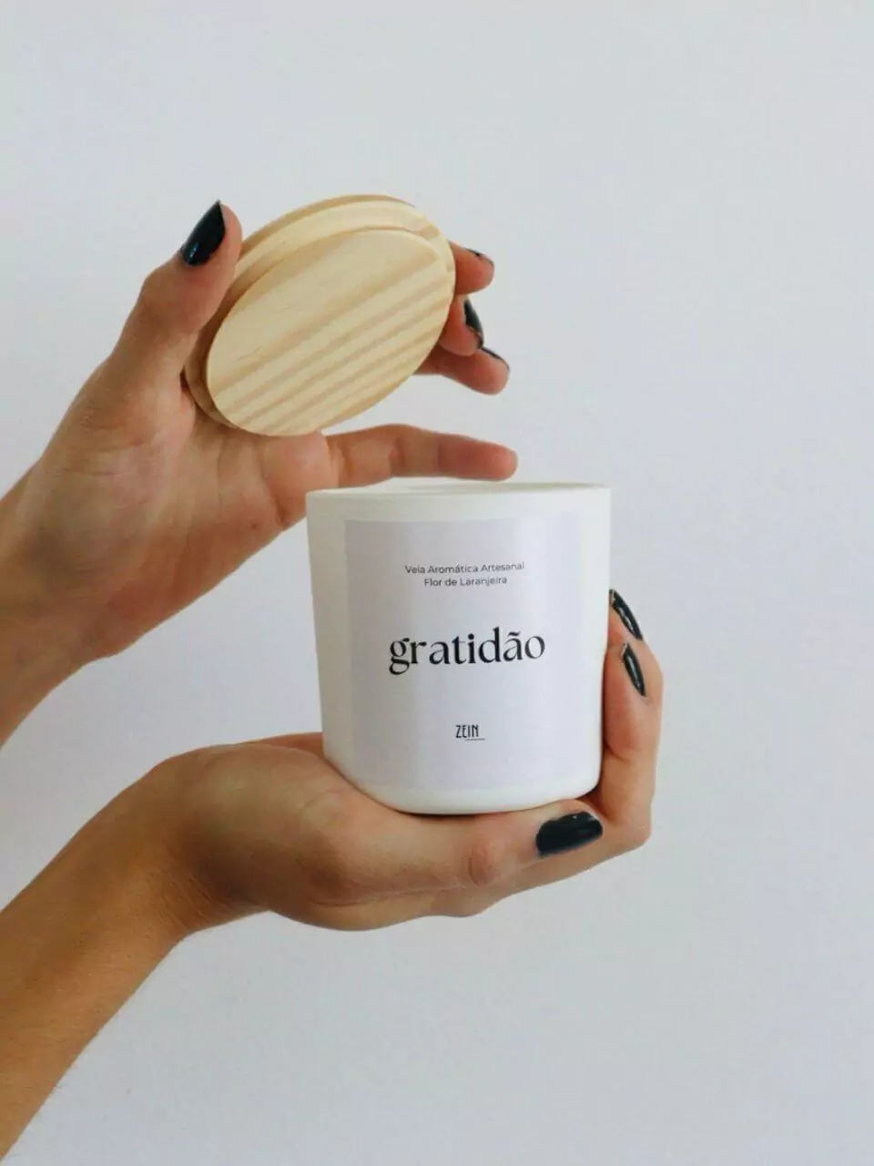 Nossa vela Gratidão, de Flor de Laranjeira, é feita à mão com muito carinho para perfumar o seu dia a dia e momentos especiais, e ideal para presentear de uma forma super afetiva e especial!